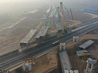 完美·体育方唐高速跨兰南高速钢箱梁项目顺利完成跨路施工吊装